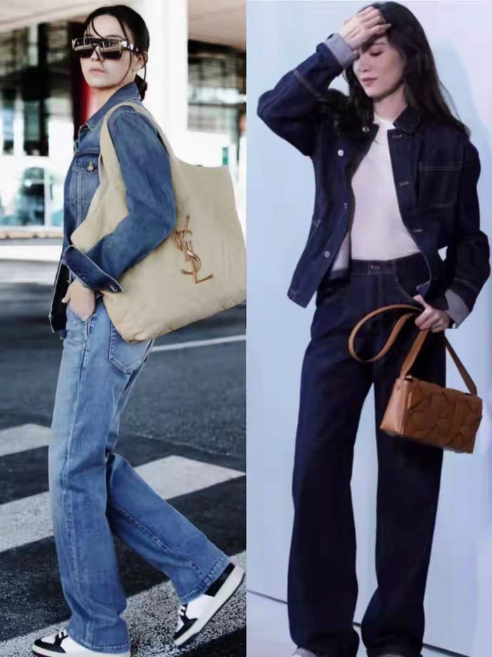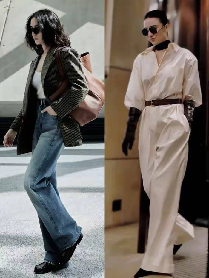 宋佳就直接选择了挺括有型的西装外套,内搭白色的T恤,下半身选择一条蓝色的牛仔直筒裤,脚上穿的是一双黑色的皮鞋,再戴上一款墨镜,走起路来又飒又美。