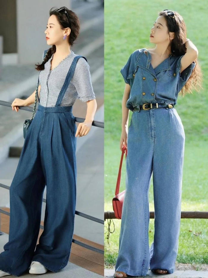 秋天出门旅行,想要拍出个性时尚的造型,推荐大家选择下面这条蓝色的牛仔背带裤,这种裤子属于阔腿的版型,对于腿粗胯宽的女性很友好,能达到遮肉显瘦的效果,而且再搭配上一件比较经典的灰色针织开衫,短袖上衣就够。