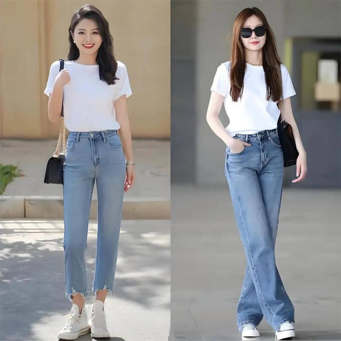 如果日常穿搭想穿的比较休闲一点,直接选择最为基础的白色短袖T恤搭配上蓝色的牛仔9分裤,脚上穿了一双白色的帆布鞋,轻轻松松穿出时尚感,谁穿谁好看,基本上不会出错,这样的打扮方式。
