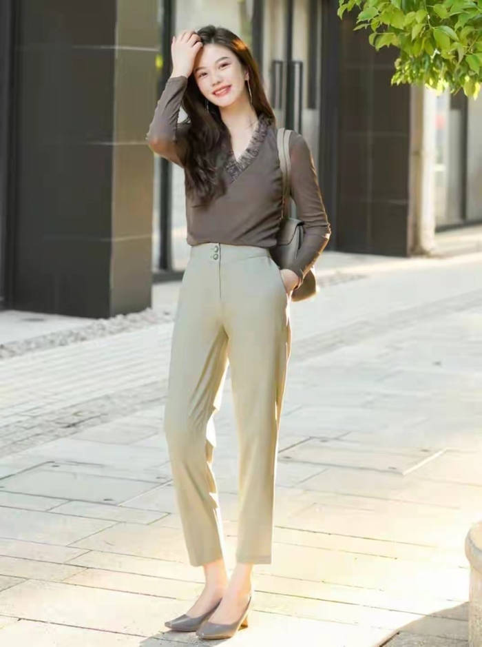 咱们也可以选择羊皮材质或者是牛皮材质的前扣低跟单鞋,为何推荐大家选这两个材质呢?原因其实很简单,这两个材质柔软舒适,不易变形,更耐穿,最主要的是非常百搭,穿在脚上能提升整体造型的档次,而且价格上来说也比较亲民,普通的职场女性也能轻松驾驭。